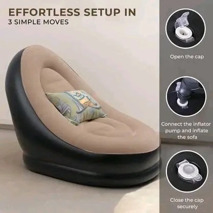The Portable Inflatable Sofa Chair with Foot Rest is a versatile and comfortable seating solution for home, office, or outdoor use. Made from premium PVC, this 3-seater inflatable sofa is lightweight, durable, and waterproof, offering convenience and style. Its ergonomic design with a footrest provides maximum comfort, while the included electric air pump ensures effortless inflation and deflation. Ideal for living rooms, dorms, balconies, camping trips, or temporary guest seating, this portable sofa is a modern, space-saving addition to any space.