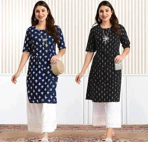 Upgrade your ethnic wardrobe with this stylish pack of 2 digital printed straight kurtis. Made from soft crepe fabric, these kurtis feature three-quarter sleeves and a comfortable regular fit, making them perfect for casual outings, office wear, or daily use. The vibrant prints and versatile design make them easy to style with leggings, palazzos, or jeans for a modern yet traditional look.