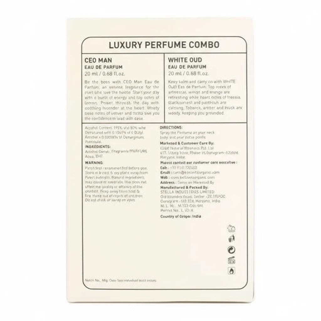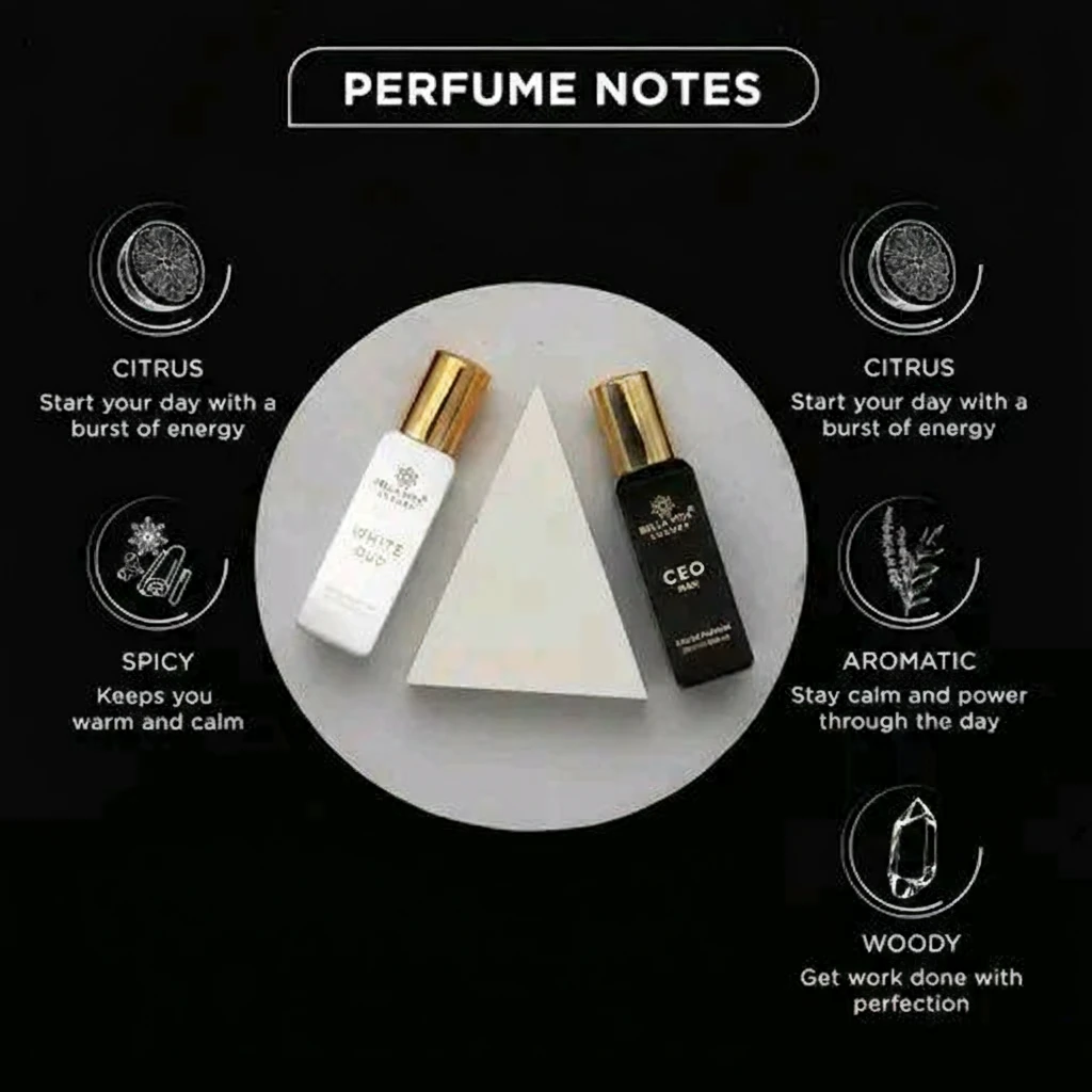 Experience the perfect balance of confidence and serenity with the Bella Vita Luxury Perfume Gift Combo. Featuring CEO Man with woody and citrusy notes and White Oud with a spicy, calming aroma, this set is crafted for both men and women. The travel-friendly bottles, long-lasting fragrance, and premium imported oils make it an ideal gift or a personal indulgence for everyday elegance.