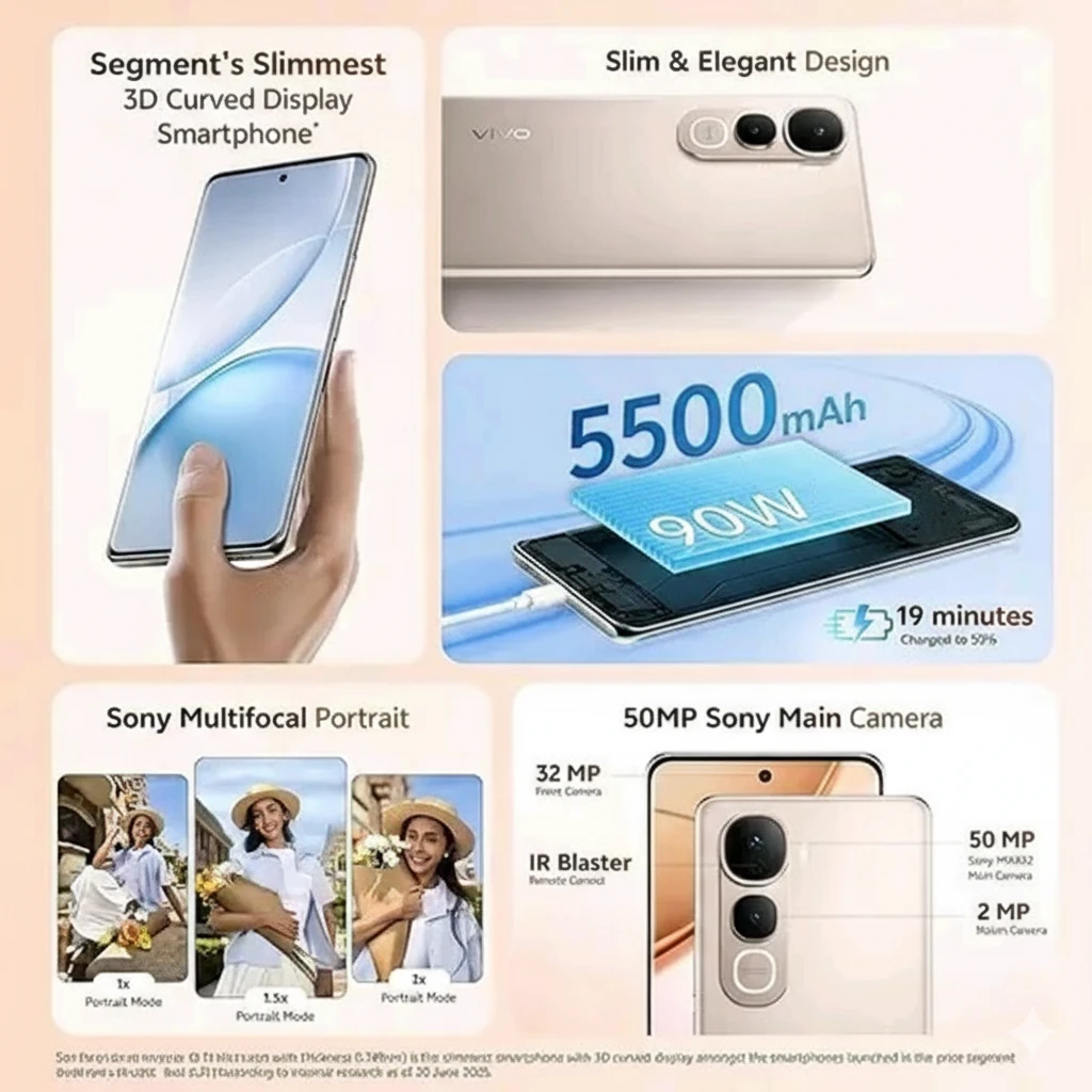 The Vivo Y400 Pro 5G combines powerful performance with elegant design. Featuring an AMOLED display with 120Hz refresh rate, a high-capacity 5500mAh battery with 90W fast charging, and an advanced camera system, this smartphone is perfect for work, gaming, and photography. With smart AI features, dual SIM support, and a sleek lightweight body, it offers a premium experience for everyday use.